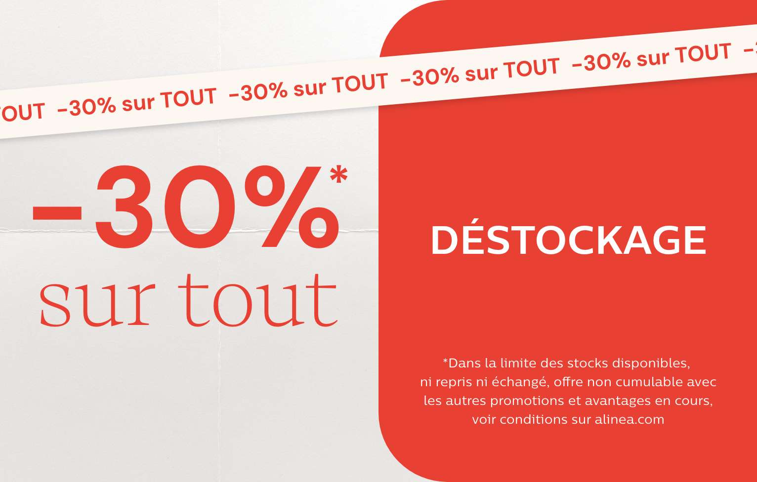 DESTOCKAGE : -30% sur TOUT*. Articles ni repris ni échangés.