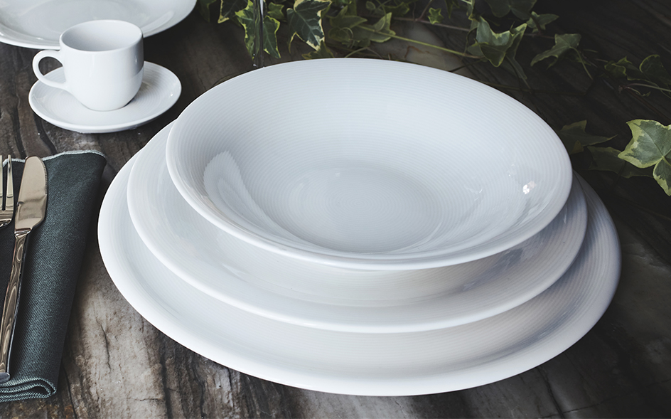 Nos assiettes, unies ou à motifs, creuses ou plates, carrées ou rondes, mettent vos plats en valeur et habillent, avec élégance et raffinement, les tables de fête comme celles du quotidien.