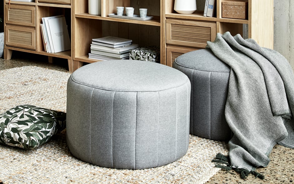 Ces poufs en matières naturelles et ces coussins de sol participent à la décoration de votre intérieur. Ils permettent de s'installer confortablement en famille ou entre amis dans le salon.