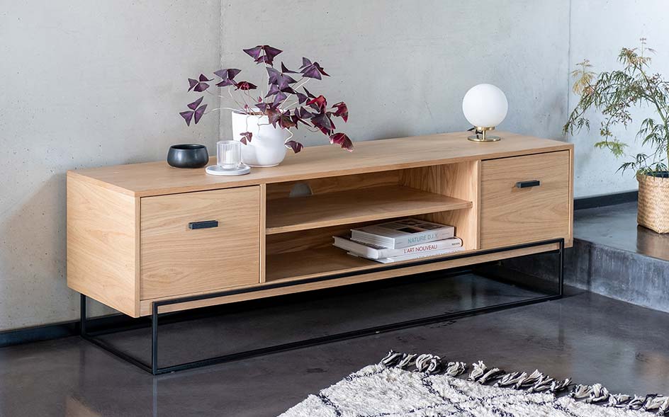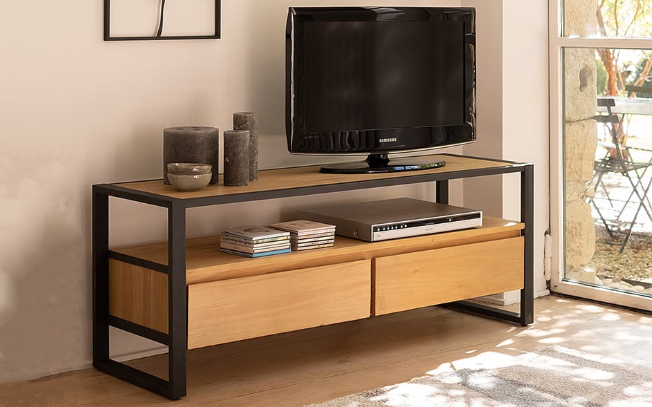 Comme il doit aussi s’adapter à votre intérieur, nous vous proposons une riche gamme de meubles télés . Nous vous proposons de sélectionner la couleur et le style. Choisissez des couleurs intemporelles comme le noir, le blanc et le gris ou optez pour des meubles couleur bois selon la décoration de la pièce. Les meubles TV en bois de chêne sont très tendances et s'accordent avec tous les styles de salon : vintage, style naturel ou encore contemporain. Plusieurs modèles de meubles TV en bois sont pourvus de jolis piétements en métal ou en acier noir. Les pieds en métal offrent un contraste très apprécié avec les meubles TV en bois clair . Ce mix de matières est très moderne et apporte une touche raffinée à votre décoration.