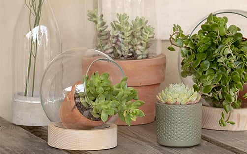 Vous aimez le côté naturel dans une décoration intérieure ? Choisir le bois comme matière principale est donc une bonne idée, tout comme ajouter des plantes dans les différentes pièces de la maison. Mais vient alors un dilemme : plutôt plantes artificielles ou vraies plantes ? Il n’y a aucun mal à opter pour une plante artificielle si vous n’avez pas la main verte ou si votre intérieur ne se prête pas à toutes les cultures. Cela apporte en effet de la gaieté et un esprit nature à l’intérieur. Cependant, si vous aimez les plantes, pourquoi ne pas transformer votre salon ou votre bureau à l’aide de quelques cactus, plantes vertes, voire arbustes ? Avec nos jolis cache-pots d’intérieur en céramique, en fer et en bois, vous pouvez décorer avec style toute votre maison ! Plante suspendue en hauteur ou au sol, pots classiques ou au design plus original, faites comme bon vous semble. Vous pourrez aussi agrémenter cette déco avec un porte-plante en rotin ou encore un terrarium à créer vous-même.
