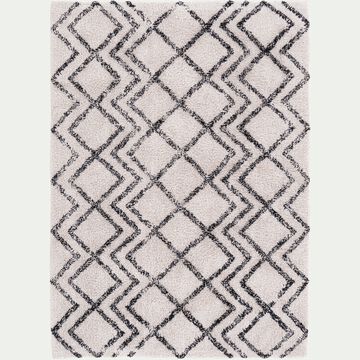Tapis en coton à motif inspiration berbère - blanc écru et noir 200x290cm
