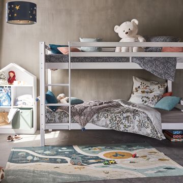 Habillez avec charme le sol de la chambre de votre enfant avec ce grand tapis et son dessin de circuit. Enfantin et ludique, il retrace un chemin telle une carte de chasse aux trésors en bord de mer. On adore les détails travaillés du motif de ce tapis d'enfant qui apporte une belle touche de couleur et d'originalité. Sa grande taille de 120x180cm permet de jouer au sol sans limite et sa fibre 100% en coton tissé à la main apporte du confort à votre petit. C'est un bel élément déco qui saura embellir la pièce.