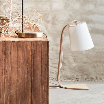 Lampe à poser en bois et coton H43cm E14
