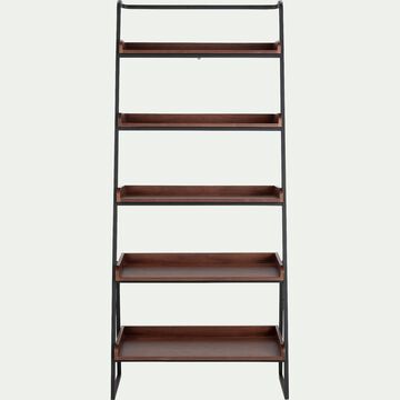 Etagère 5 tablettes plaquée noyer et métal noir - L80cm
