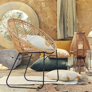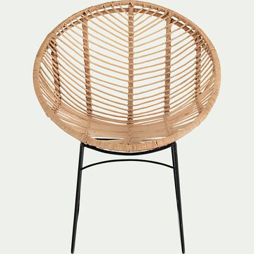 Fauteuil rond en rotin et métal - naturel