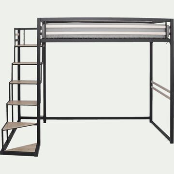 Lit 2 places mezzanine en acier - noir 140x200cm