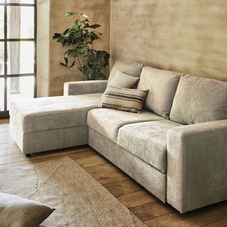 Canapé d'angle réversible convertible en tissu tramé - beige roucas