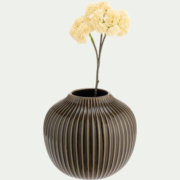 Le vase décoratif Ivanec, en grès vert foncé, séduit par son allure sophistiquée. Sa forme ronde apporte de la douceur, tandis que sa surface striée de rayures verticales apporte texture et profondeur. Ce design met en valeur la richesse de sa teinte profonde. Non étanche, il est idéal pour accueillir des fleurs séchées ou s'exposer seul comme objet déco. Parfait sur une table, ce vase en grès apporte une touche de caractère naturel et raffiné à votre intérieur.