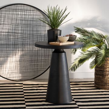 Le bout de canapé Jamui est confectionné en fonte d'aluminium : un alliage moulé de métaux offrant un meuble d'appoint solide mais léger. Ce bout de canapé en métal présente une forme graphique. Son pied de forme conique est surmonté d'un plateau rond, assez épais. Les lignes sont brutes, voire rustiques, et offrent un meuble de salon qui a tout d'un objet déco. Ce bout de canapé noir apporte du contraste et de la profondeur à votre intérieur. Un bel allié qui sublimera votre décoration à poser.