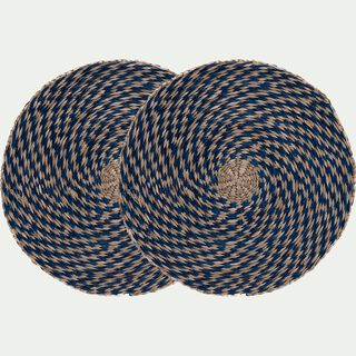 Lot de 2 sets de table ronds en jonc de mer D36cm - bleu