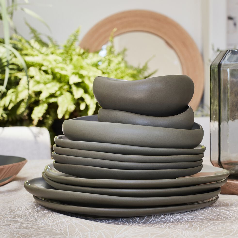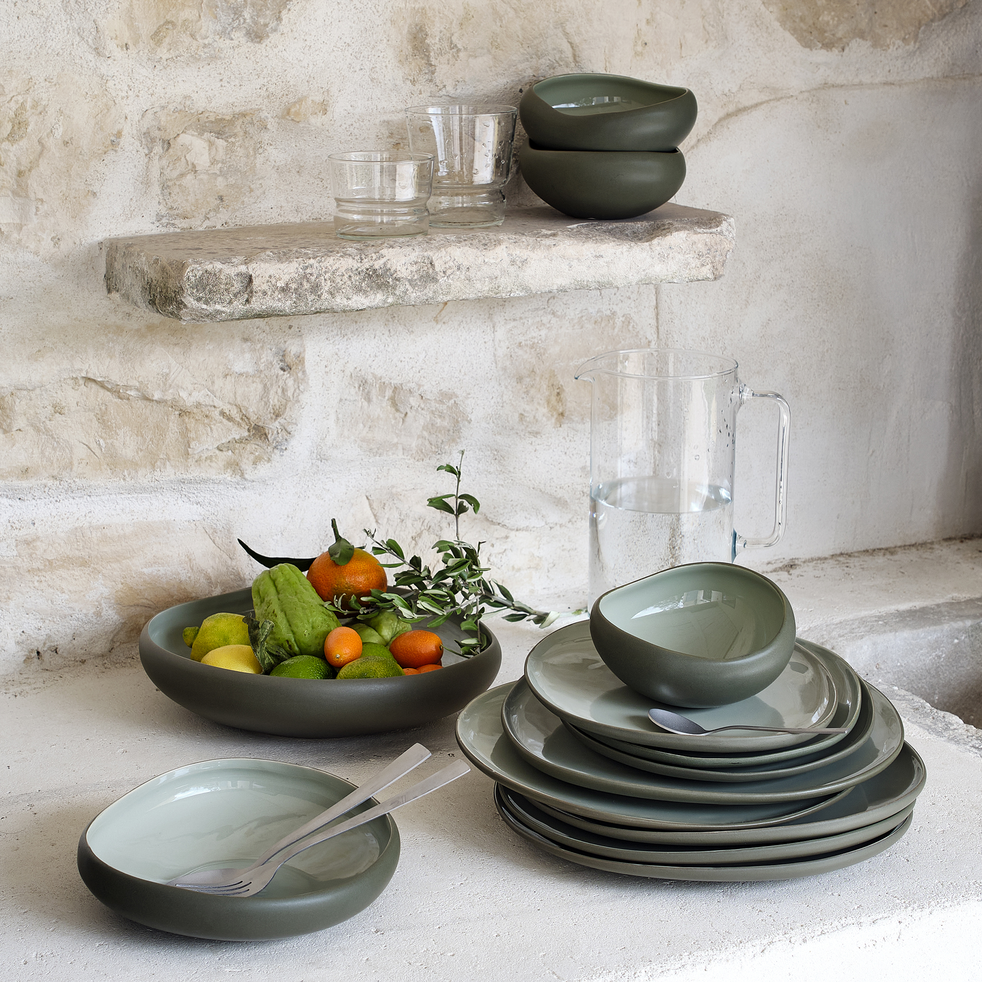 Service de vaisselle en grès - vert olivier