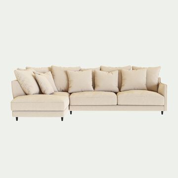 Canapé d'angle gauche fixe en tissu joint - beige roucas
