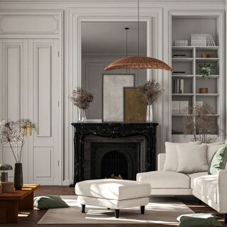 Structure et suspension : Structure en panneaux de particules et multiplis renforce par sapin massif. Assise et dossier : Assise en mousse polyurethane densité 30kg/m3 et couette en fibre polyester. Coussins dossier garnissage plumes d'oie et fibre polyester.