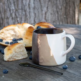 Avec sa généreuse contenance de 40 cl, ce grand mug en grès invite à savourer les boissons chaudes avec lenteur. Fabriqué au Portugal, terre de tradition céramique, il arbore un design tricolore plein de caractère : un blanc lumineux, rehaussé de deux nuances de marron qui rappellent la terre et le café. Sa forme ronde et sa anse en font un indispensable du quotidien, aussi pratique que décoratif sur la table du petit-déjeuner.