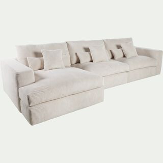 Canapé d'angle gauche fixe en velours côtelé - beige roucas