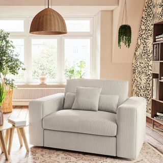 Fauteuil fixe en velours côtelé - beige roucas