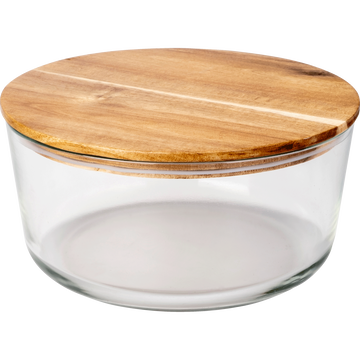 Boîte ronde en verre avec couvercle en bois D18,6cm