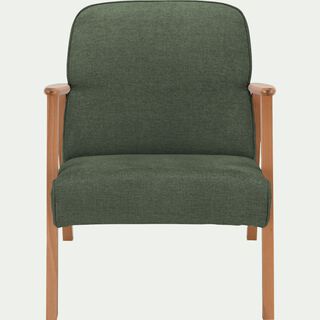 Avec son tissu vert cèdre, doux et naturel, ce fauteuil invite à la détente. Son assise généreuse et son dossier rembourré offrent un confort idéal pour les moments de repos. Deux accoudoirs viennent compléter la silhouette enveloppante, tandis que le piètement en hêtre apporte une touche authentique et chaleureuse. Un fauteuil en tissu pensé pour le salon, entre style apaisant et bien-être au quotidien.