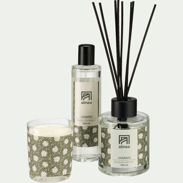 Le coffret Jasmin est composé de trois éléments partageant la senteur du même nom. On retrouve ici une bougie parfumée, un vaporisateur ainsi qu'un bouquet parfumé. Ensemble, ils harmonisent votre intérieur tout en créant une atmosphère douce où règne le bien-être. Le jasmin étoilé, fleur rare que l'on retrouve en Tunisie, se marie subtilement à des notes de fleurs blanches pour une fragrance résolument florale. Baume orientale qui invite à la détente en fin de journée, c'est une escapade olfactive dans les ruelles blanches et bleues de Sidi Bou Saïd qui vous attend. Un coffret à l'odeur chaude et opulente, évoquant les jardins luxuriants de ce monde.