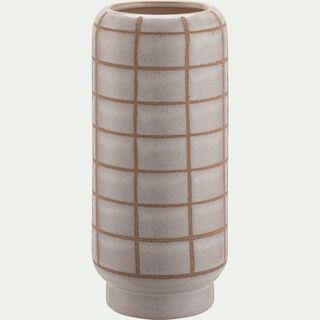 Vase quadrillé en céramique H32,5cm - blanc