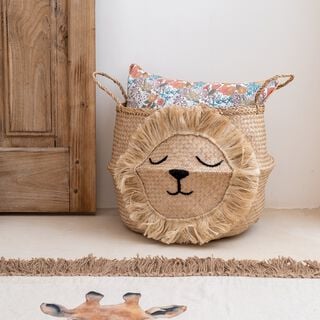 Panier déco lion en jonc de mer D40xH38cm - naturel