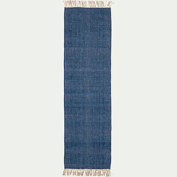 Tapis de couloir et laine et jute - bleu figuerolles 60x200cm