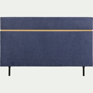 Affirmez votre style avec cette tête de lit de 162 cm au design épuré et contemporain. Son revêtement bleu profond, souligné par une bande horizontale en bois naturel, apporte une touche graphique et chaleureuse à votre chambre à coucher. Conçue avec une structure en bois massif et un rembourrage confortable, elle offre un soutien agréable au quotidien. Facile à intégrer grâce à ses lignes sobres et ses pieds noirs, cette tête de lit fabriquée en Roumanie combine élégance et praticité pour une chambre pleine de caractère.