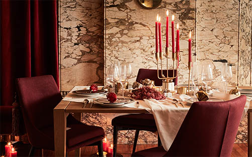 - Des couverts de Fête : le doré reste la valeur sûre pour apporter cette touche de lumière indispensable. Que vous choisissiez un service complet ou des couverts à dessert (fourchette et cuillère) uniquement pour le moment du partage de la bûche, ils sont l’écho du scintillement de votre décoration.