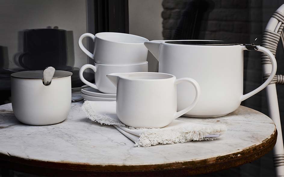 Une douce odeur de café, des viennoiseries encore fumantes, une table dressée avec notre vaisselle actuelle, aux tons chaleureux et sobres.
